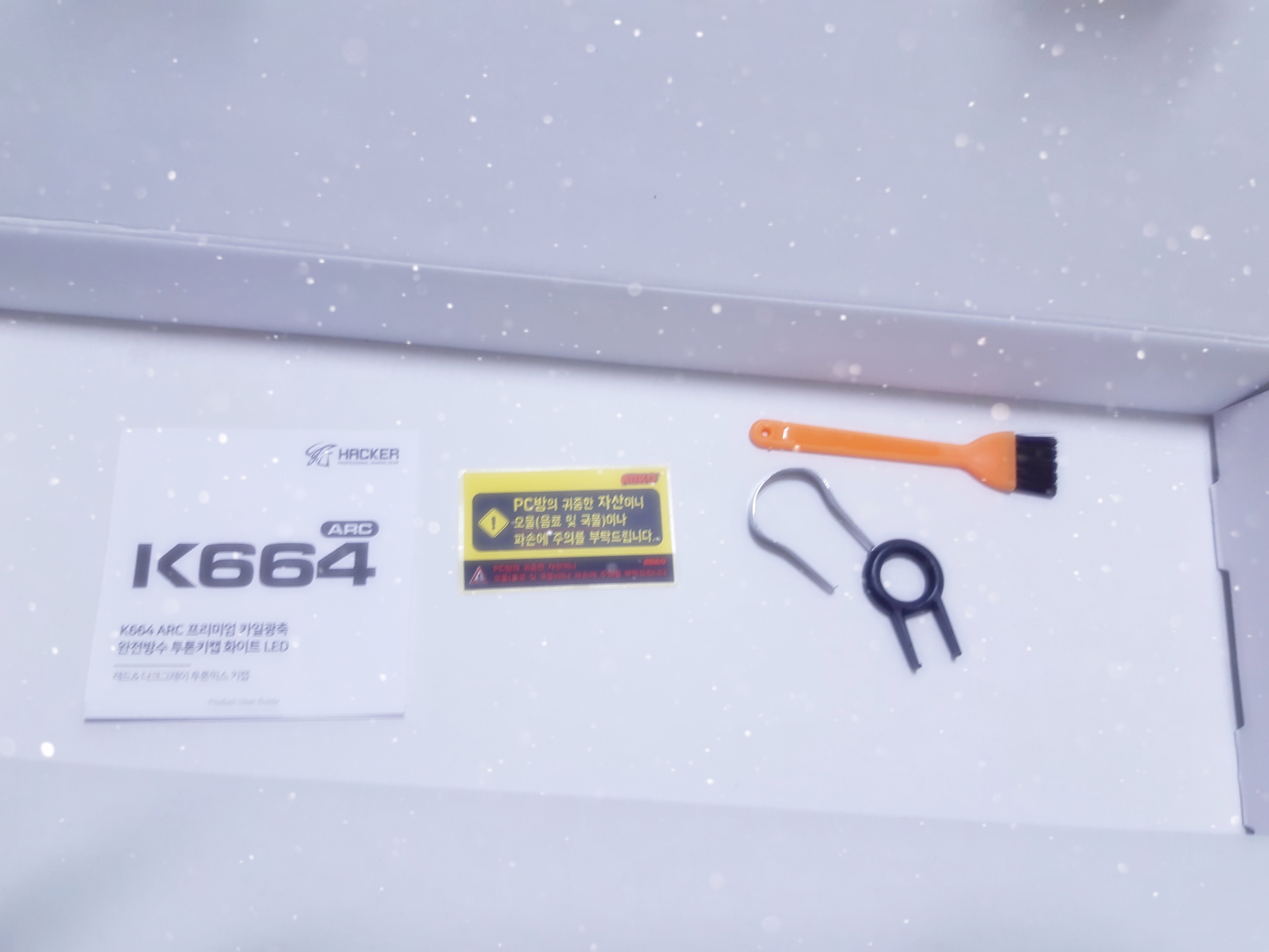 키보드를 꺼내니 설명서, 키보드 청소 브러쉬, 키캡 리무버 이렇게 있었어요